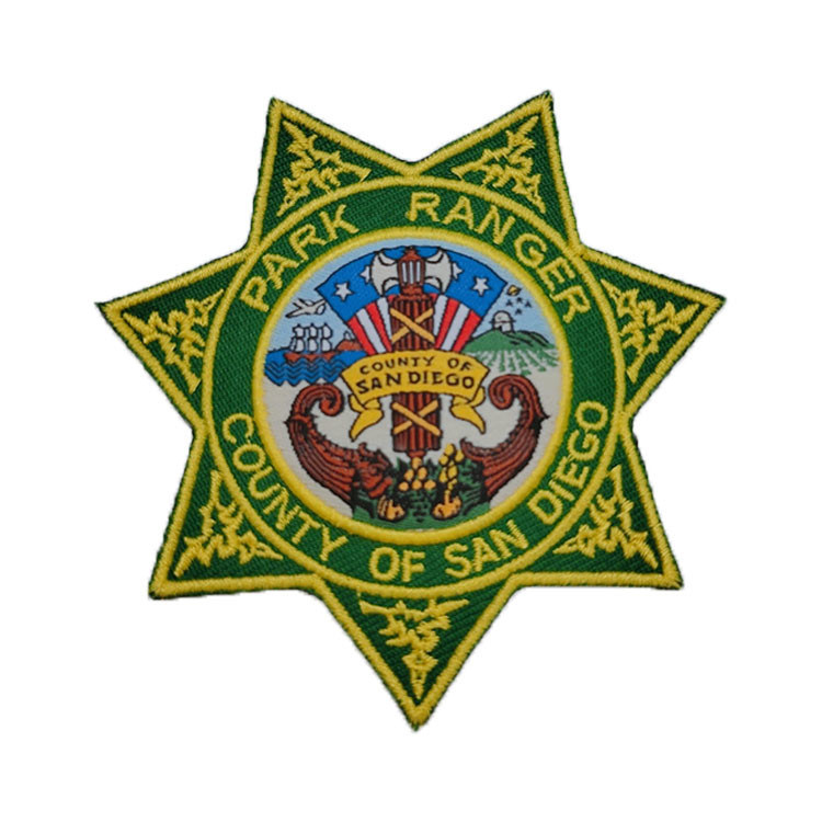 우븐 패치 위의 커스텀 로고 헵타터스 레이저 절단 과장 패치 가득 찬 과장 철